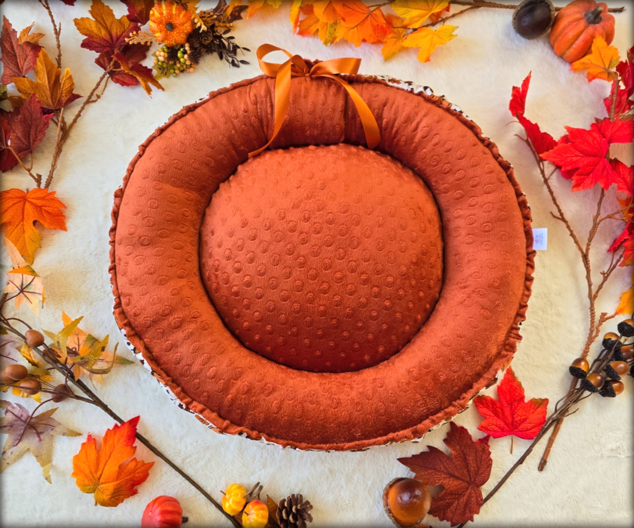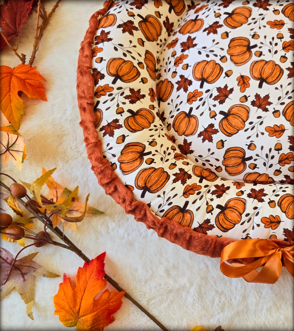 Panier rond, réversible, une face recto en coton, une face verso en minky toute douce