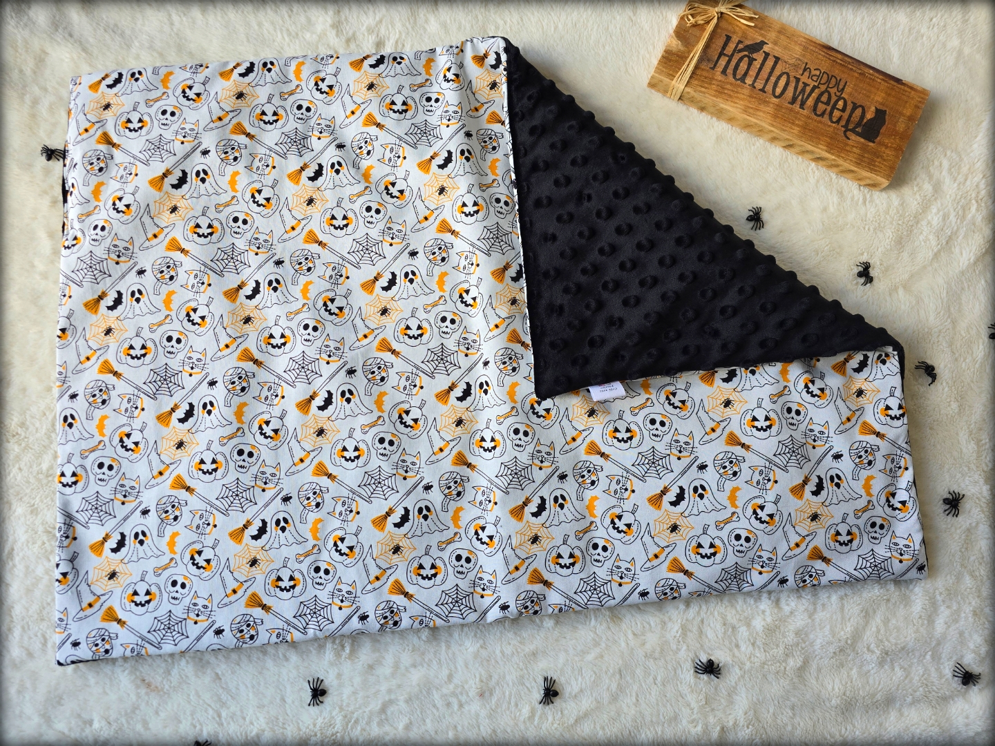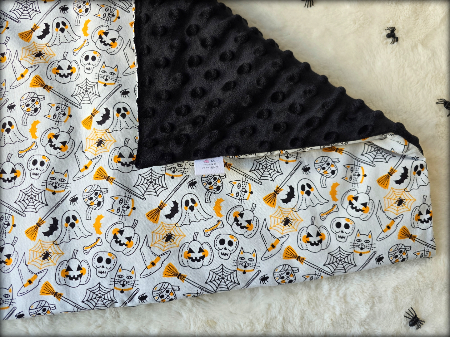 Réversible, une face coton, une face minky toute douce, rembourré avec une ouatine d'environ 3 cm d'épaisseur